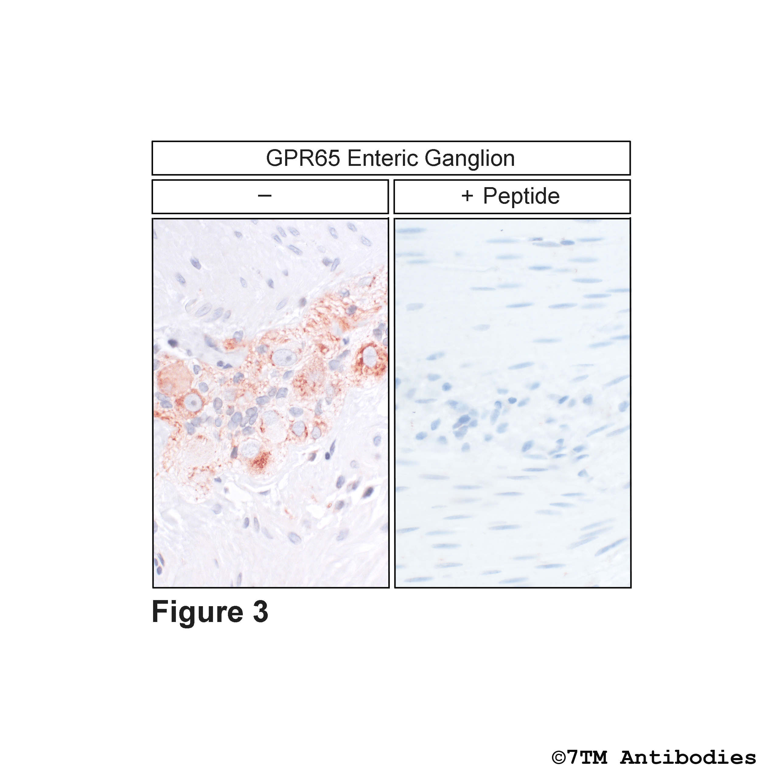 The GPR65 antibody is directed against the distal end of the carboxyl-terminal tail of mouse, rat and human GRP65. It can be used to detect total GPR65 receptors in Western blots independent of phosphorylation. The GPR65 antibody can also be used to isolate and enrich GPR65 receptors from brain lysates. It also detects GPR65 in cultured cells and tissue sections by immunohistochemistry.