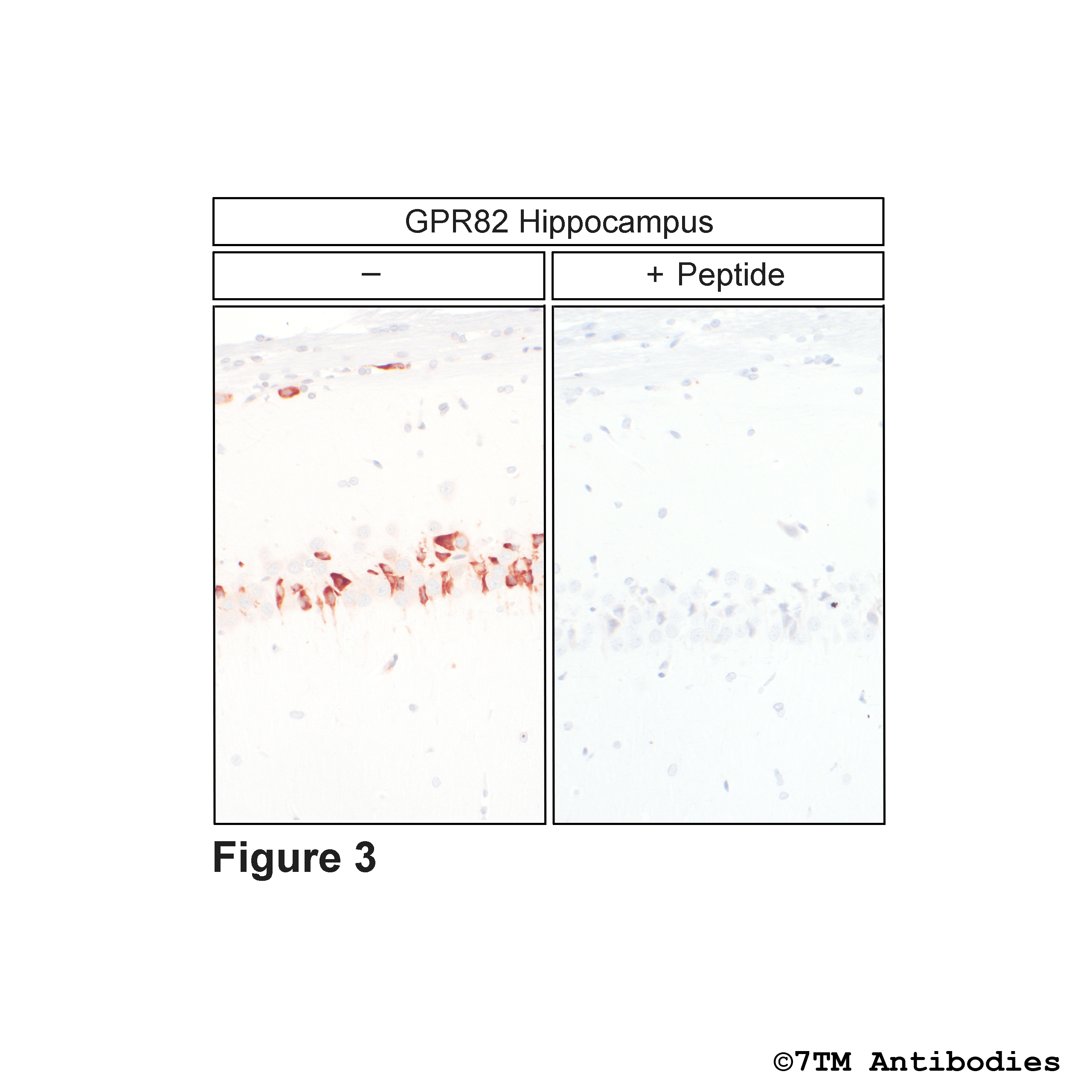The GPR82 antibody is directed against the distal end of the carboxyl-terminal tail of mouse, rat and human GRP82. It can be used to detect total GPR82 receptors in Western blots independent of phosphorylation. The GPR82 antibody can also be used to isolate and enrich GPR82 receptors from brain lysates. It also detects GPR82 in cultured cells and tissue sections by immunohistochemistry.