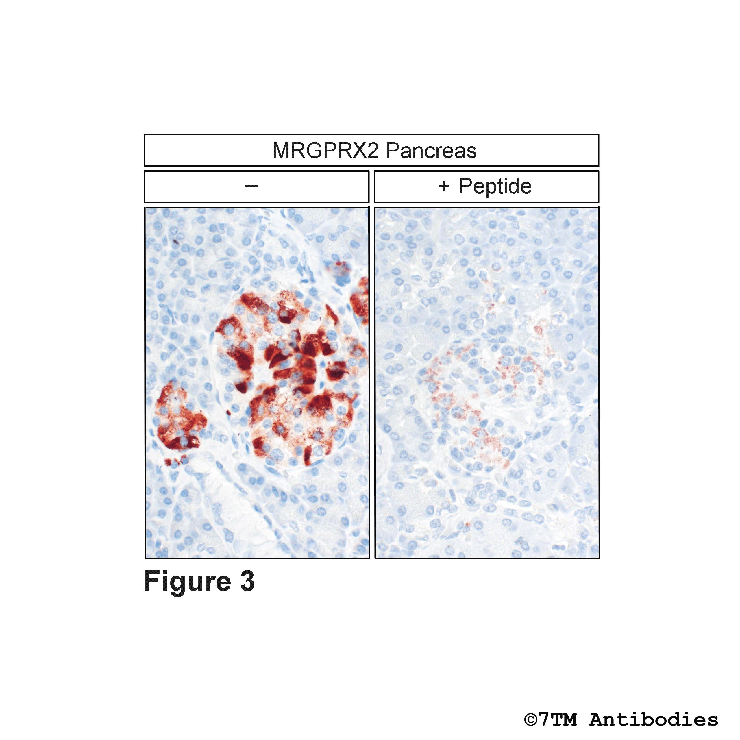 Immunogen | A synthetic peptide corresponding to distal end of carboxy-terminal tail of human MRGRPX2. |