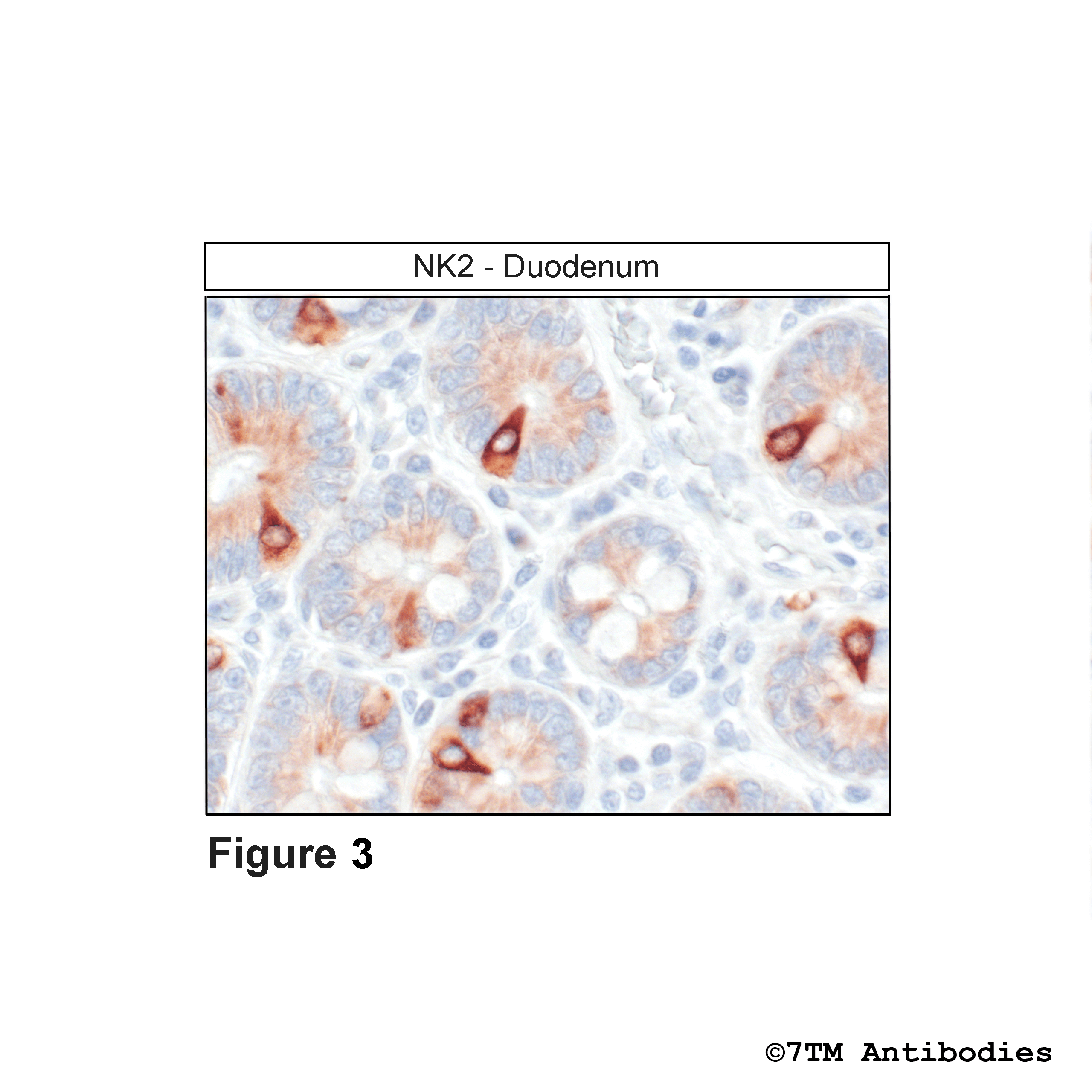 The NK2 antibody is directed against the distal end of the carboxyl-terminal tail of human Tachykinin Receptor 2. It detects selectively the NK2 Tachykinin Receptor. It can be used to detect total NK2 receptors in Western blots independent of phosphorylation. The NK2 antibody can also be used to isolate and enrich NK2 receptors from brain lysates. It also detects NK2 in cultured cells and tissue sections by immunohistochemistry.